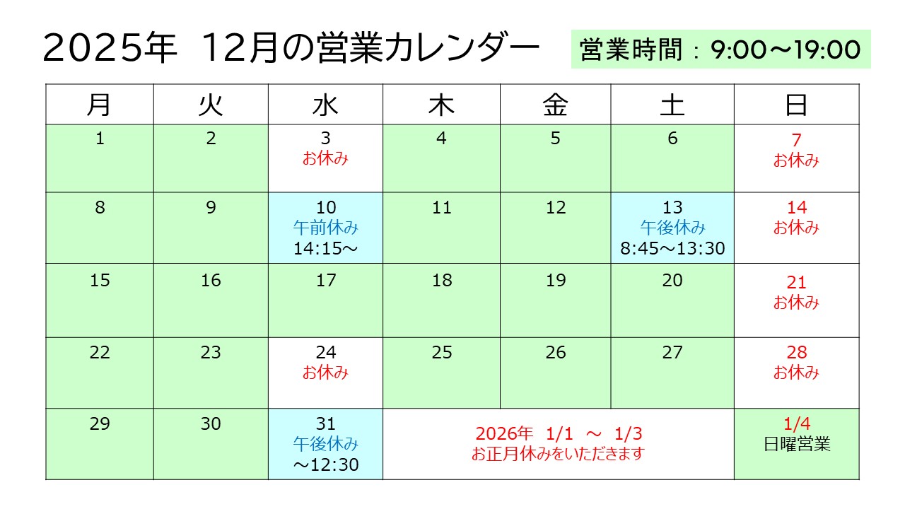 ※2026年1月1日~3日はお休みさせていただきます。1月4日(日)より営業します。