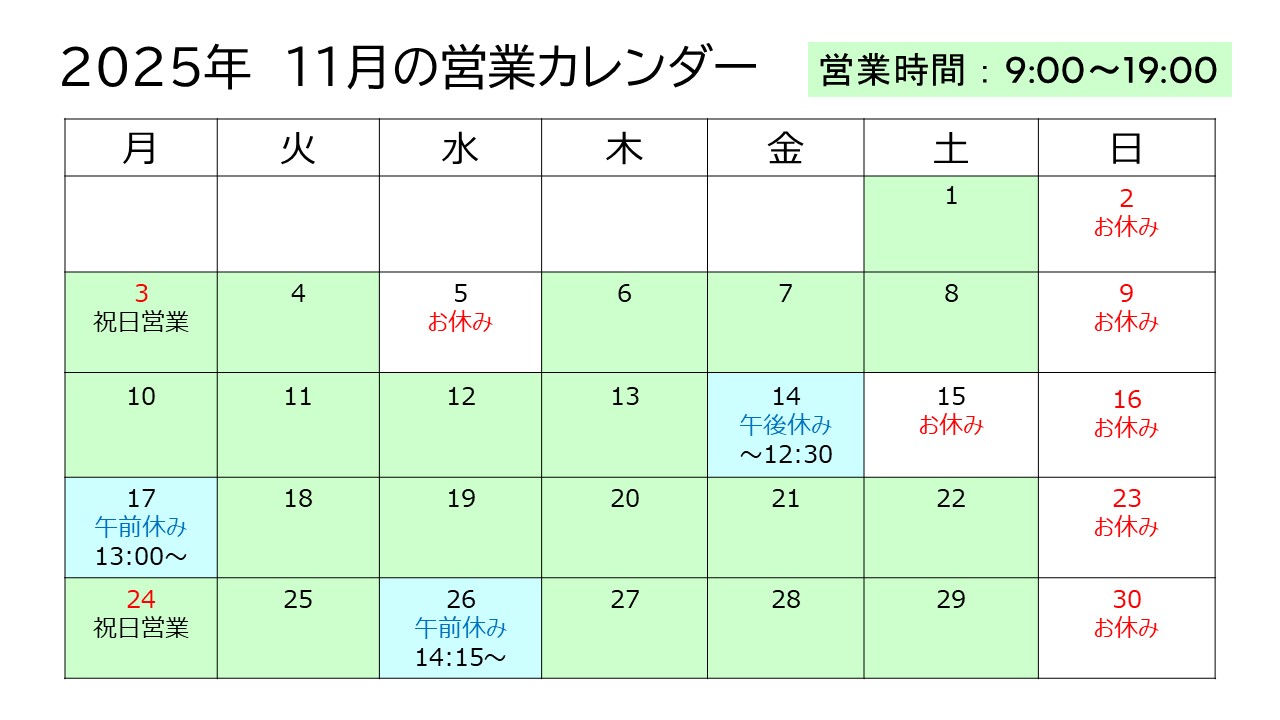 11月の営業カレンダーをご案内させていただきます。